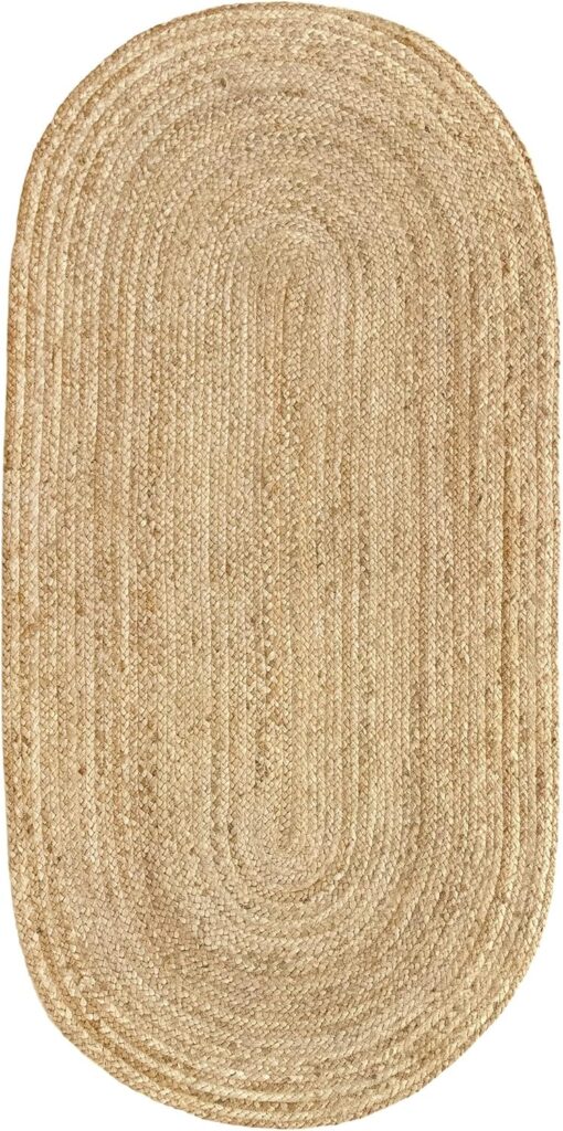 HAMID - Tapis Ovale en Jute de Couleur Naturelle Alhambra, Tapis Fait Main, 100% Fibre de Jute, pour Salon, Chambre, Décoration, (70x140cm)