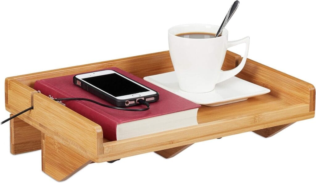 Relaxdays Étagère de lit, mini-table de chevet à clipser, en bambou, peu encombrante, emplacements pour câbles, étagère BT 33x24 cm, naturelle
