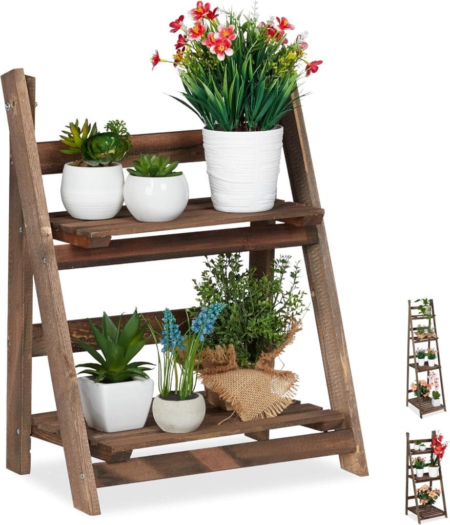 Relaxdays étagère escalier fleurs, escalier fleurs bois 2 niveaux, pliable, échelle plantes, HlP 51,5x 41x24 cm, brun