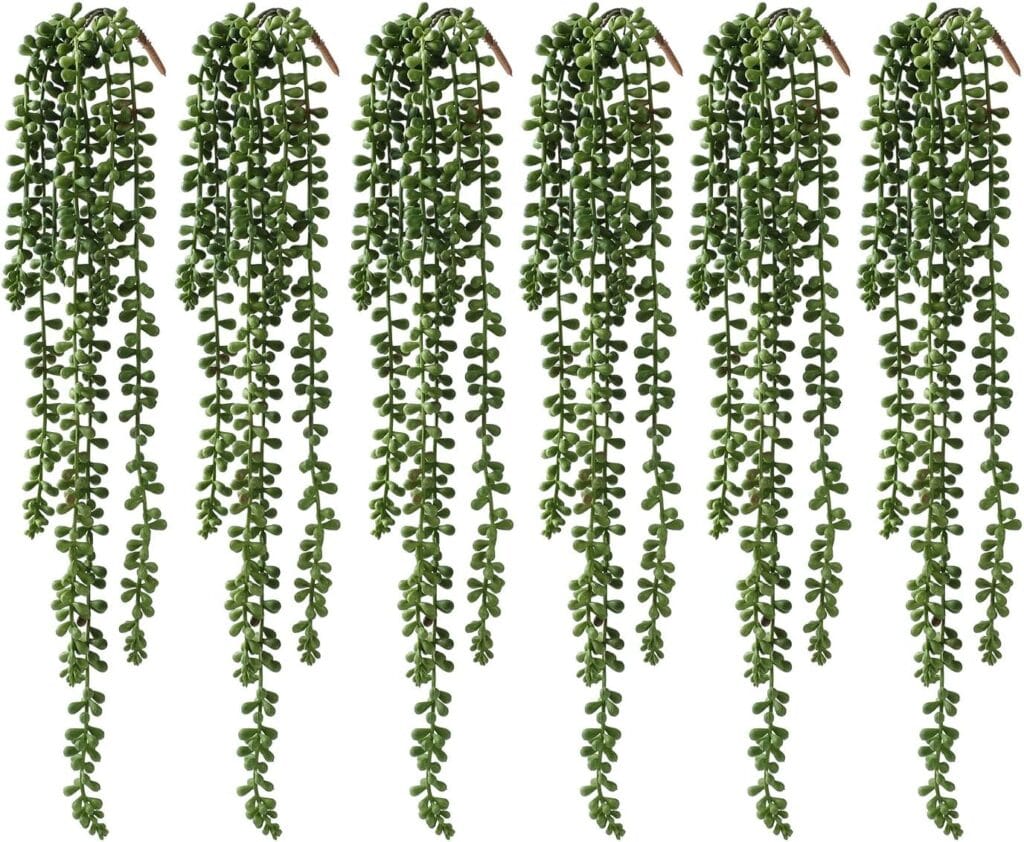dallisten Lot de 6 Plantes succulentes artificielles à Suspendre, Fausses guirlandes de Perles, Plantes Vertes, décoration pour Mur,