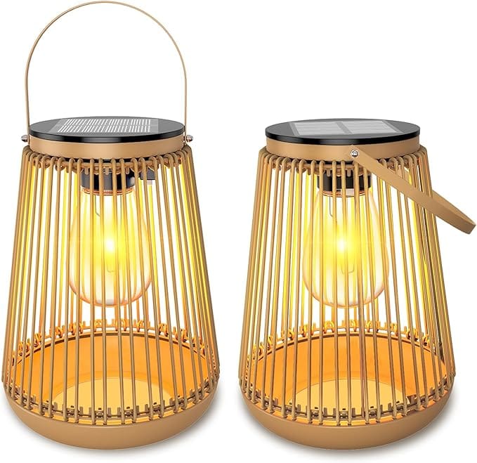 Lampe Solaire Extérieure, KagoLing 2 Pièces Lanterne Solaire Extérieure Décoration Jardin Avec Ampoules LED Blanc Chaud