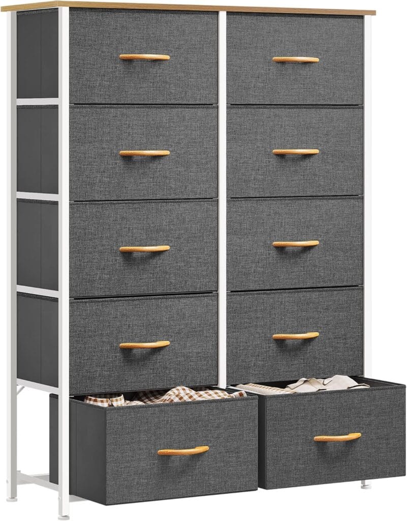 YITAHOME Commode pour Chambre à Coucher avec 10 tiroirs, Meuble de Rangement, Cadre en Acier Robuste, Planche en Bois, tiroirs en Tissu (Gris)