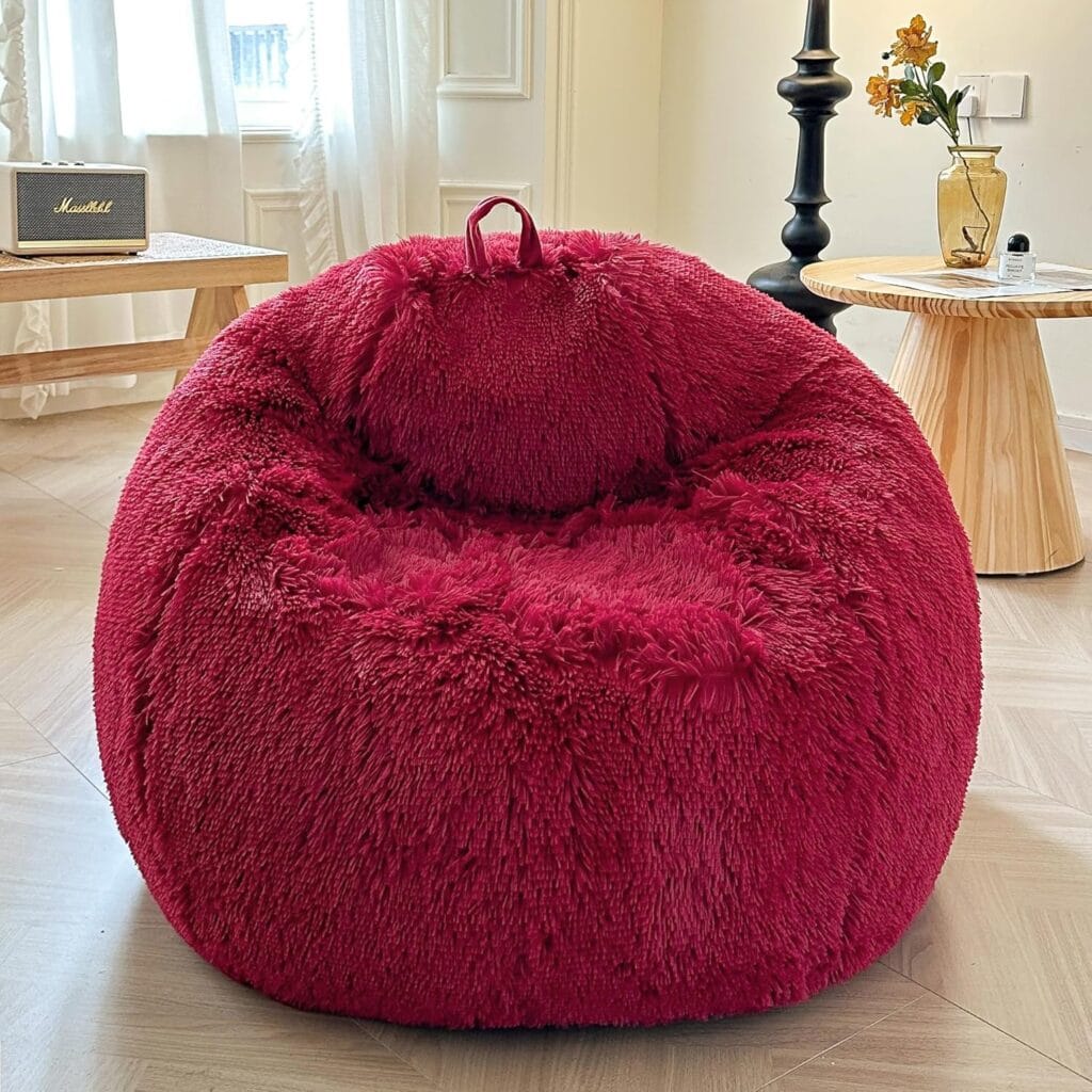 XeGe Housse de pouf en fausse fourrure (sans remplissage), housse de pouf de rangement en peluche moelleuse pour chambre à coucher