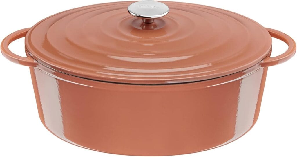 Tefal Lov Cocotte ovale 34 x 26 cm en fonte d’acier, Induction intégrale + four, Revêtement intérieur émaillé, Robuste et écodesign, Cuisine saine, Ebook de recettes inclus, Terracotta