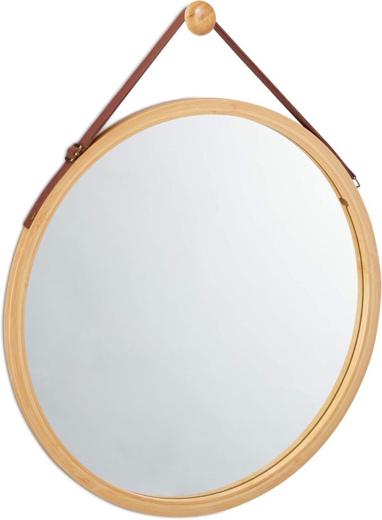 relaxdays 10026502 Miroir Rond à accrocher, lanière réglable, en Bambou, Moderne, Couloir, Salle de Bain