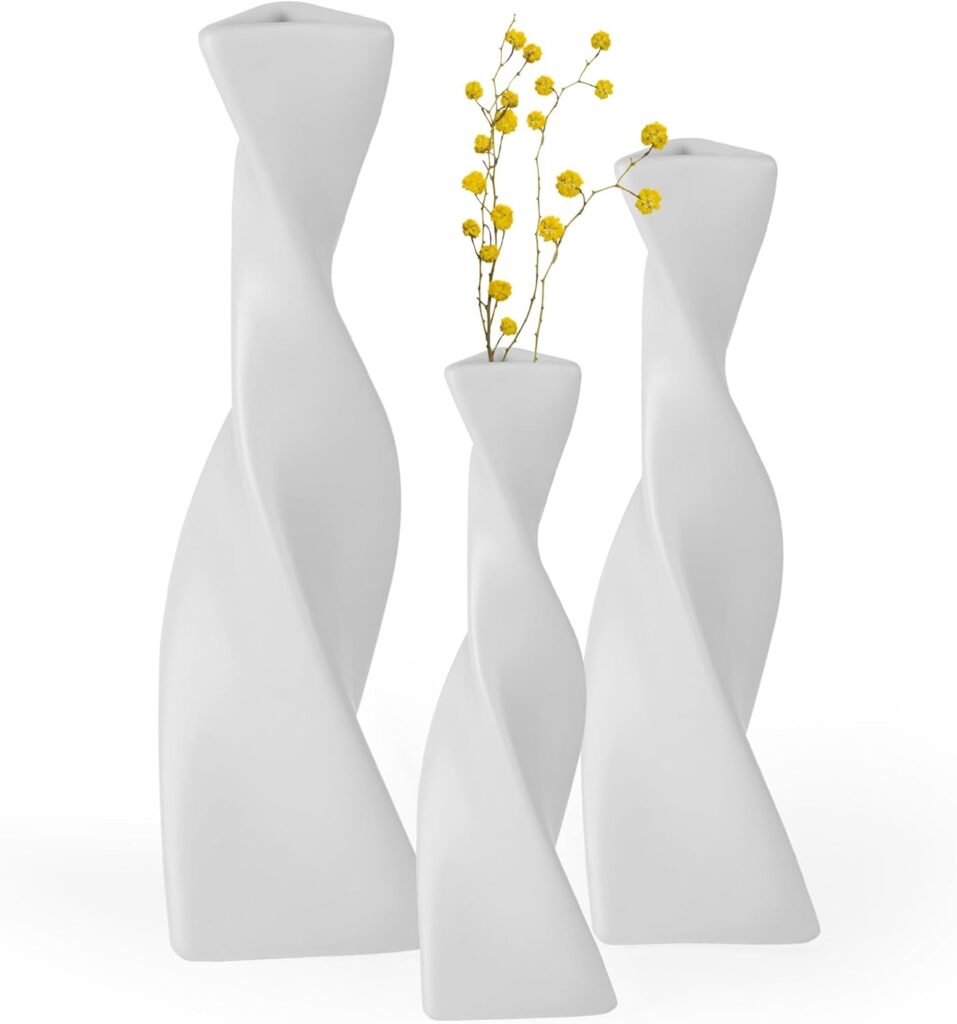 Grünara Lot de 3 vases décoratifs - en céramique - pour décoration d'intérieur Moderne - Décoration scandinave Minimaliste - Vase de Fleurs pour Herbe de la Pampa et Fleurs séchées - Blanc