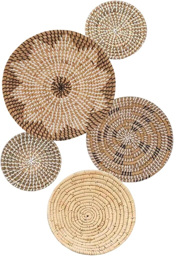 KYEQATY Lot De 5 Paniers Muraux TisséS De DifféRentes Tailles à Suspendre Paniers TisséS Ronds Et Plats en Jonc De Mer DéCoration Murale pour La Maison La Cuisine