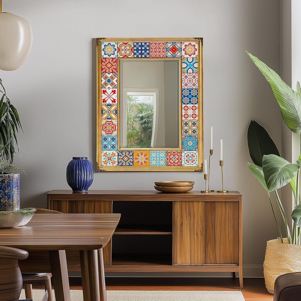 Miroir Talavera à carreaux rectangulaires, 61 x 45,7 cm, cadre doré rétro, miroir pour mur, miroir méditerranéen pour salle à manger