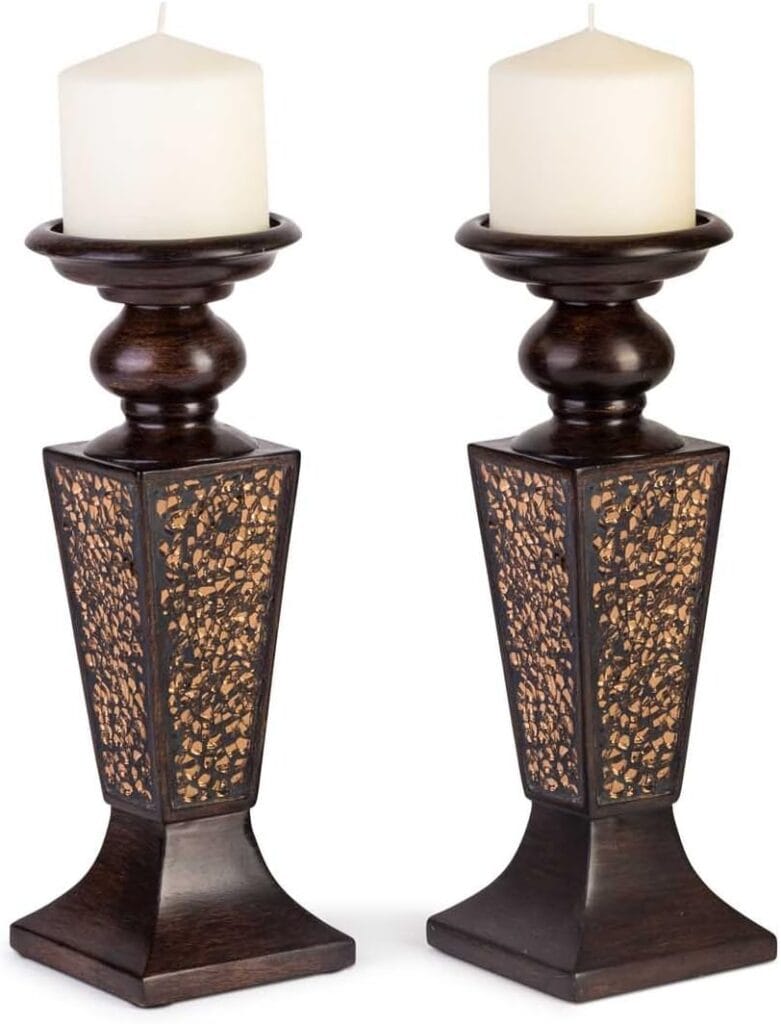 Creative Scents Schonwerk Lot de 2 bougeoirs piliers en mosaïque craquelée - Décorations de Centre de Table pour Salle à Manger, (Noyer)