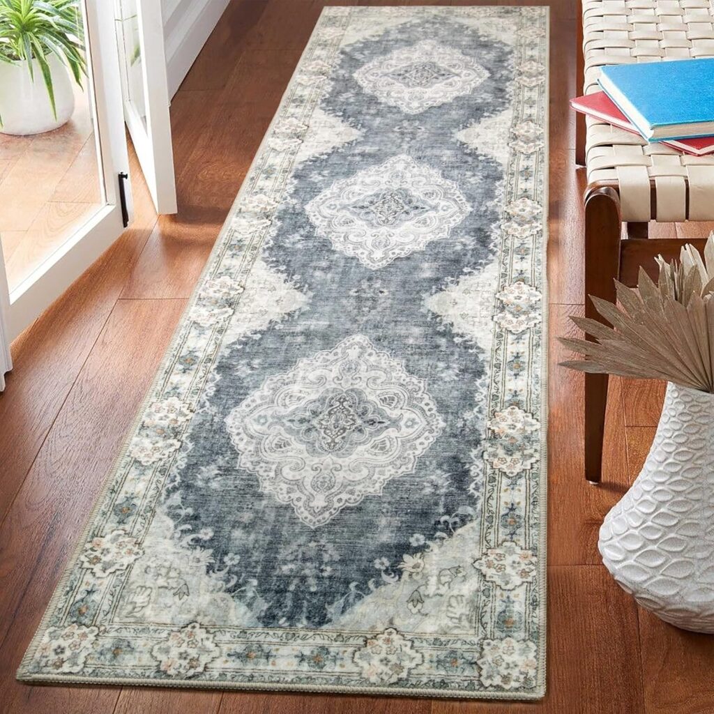 MUJOO Tapis de couloir long de 61 x 244 cm, style bohème, lavable en machine, antidérapant à poils courts et motif floral