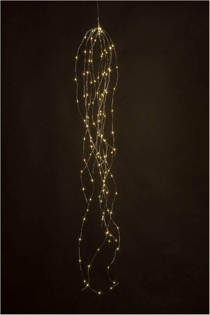 Guirlande lumineuse LED Cascade avec 125 LED en blanc chaud, avec minuterie de 6 heures, fonctionnant sur piles