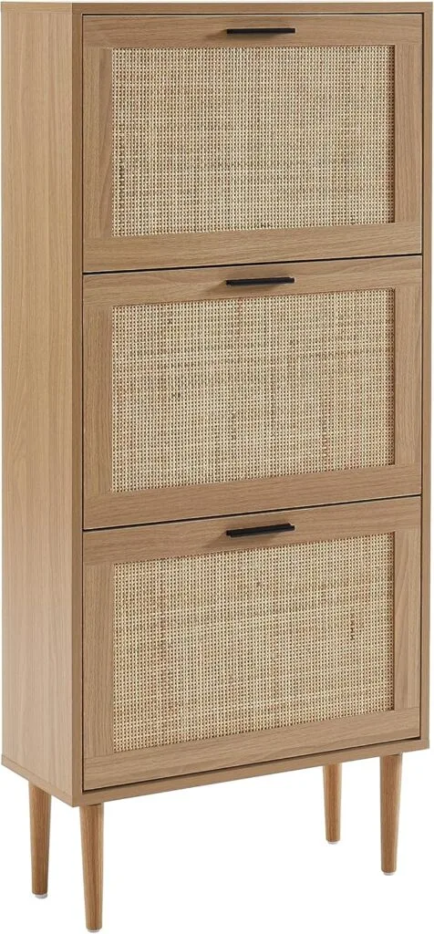 BAÏTA - Meuble à Chaussures Amana Effet chêne et cannage rotin 60cm